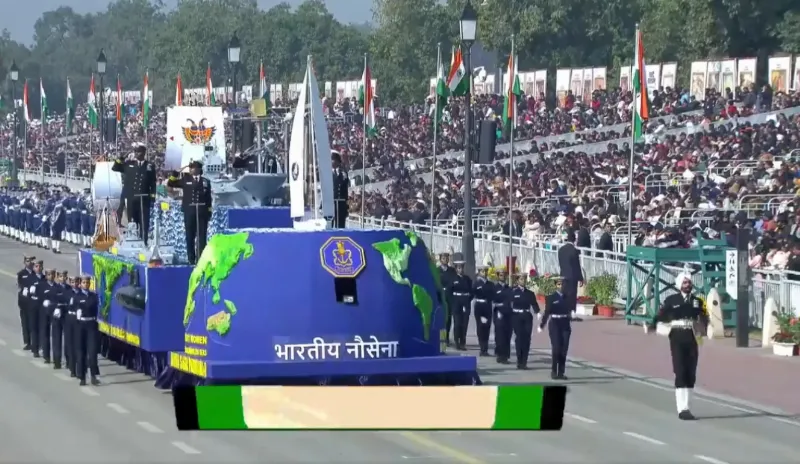 77वें गणतंत्र दिवस की परेड में भारतीय नौसेना की झांकी ने हिस्सा लिया. इस झांकी का नेतृत्व लेफ्टिनेंट कमांडर रूपा ए और लेफ्टिनेंट कमांडर दिलना के कर रही हैं.