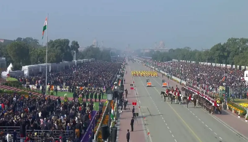 नई दिल्ली: भारत 77वें गणतंत्र दिवस के मौके पर कर्तव्य पथ पर होने वाली परेड में अपनी विकास यात्रा, सांस्कृतिक विविधता और सैन्य ताकत का प्रदर्शन कर रहा है. इसमें नई सैन्य इकाइयों और ऑपरेशन सिंदूर में इस्तेमाल किए गए हथियारों के मॉडल दिखाए जाएंगे. ‘वंदे मातरम’ के 150 वर्ष की थीम पर आधारित इस समारोह की अगुवाई राष्ट्रपति द्रौपदी मुर्मू कर रही हैं. कार्यक्रम की शुरुआत प्रधानमंत्री नरेंद्र मोदी द्वारा राष्ट्रीय युद्ध स्मारक जाकर शहीद सैनिकों को श्रद्धांजलि देने से हुआ. इसके बाद राष्ट्रपति द्रौपदी मुर्मू और मुख्य अतिथि राष्ट्रपति के अंगरक्षकों की सुरक्षा में पारंपरिक बग्घी में कर्तव्य पथ पहुंचे.