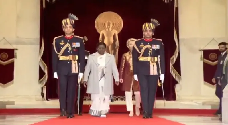 राष्ट्रपति द्रौपदी मुर्मू और #RepublicDay2026 के मुख्य अतिथि यूरोपियन काउंसिल के अध्यक्ष एंटोनियो लुइस सैंटोस दा कोस्टा और यूरोपियन कमीशन की अध्यक्ष उर्सुला वॉन डेर लेयेन राष्ट्रपति भवन से कर्तव्य पथ के लिए रवाना हुए.