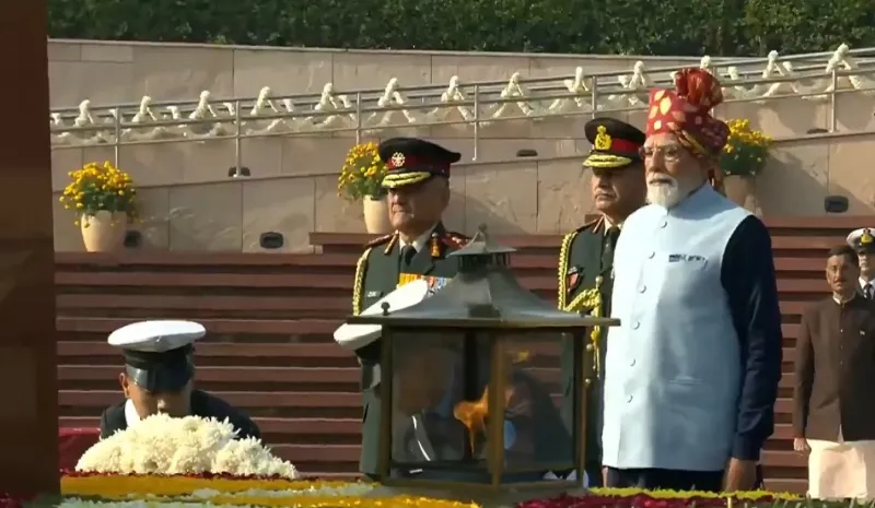 प्रधानमंत्री नरेंद्र मोदी ने दिल्ली में नेशनल वॉर मेमोरियल में शहीद सैनिकों को श्रद्धांजलि दी.